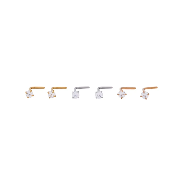 Multi-Pack Prong CZ L-Bend Nose Rings 6 Pack – 20 Gauge