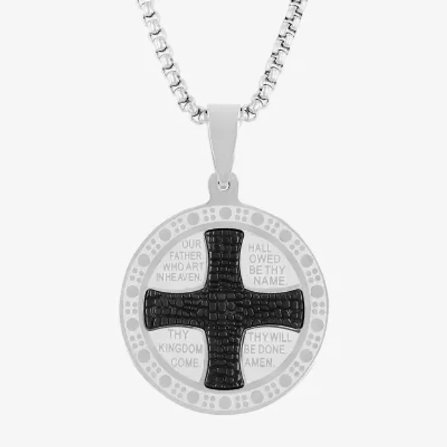 Mens Stainless Steel Cross 24 Inch Pendant Necklace