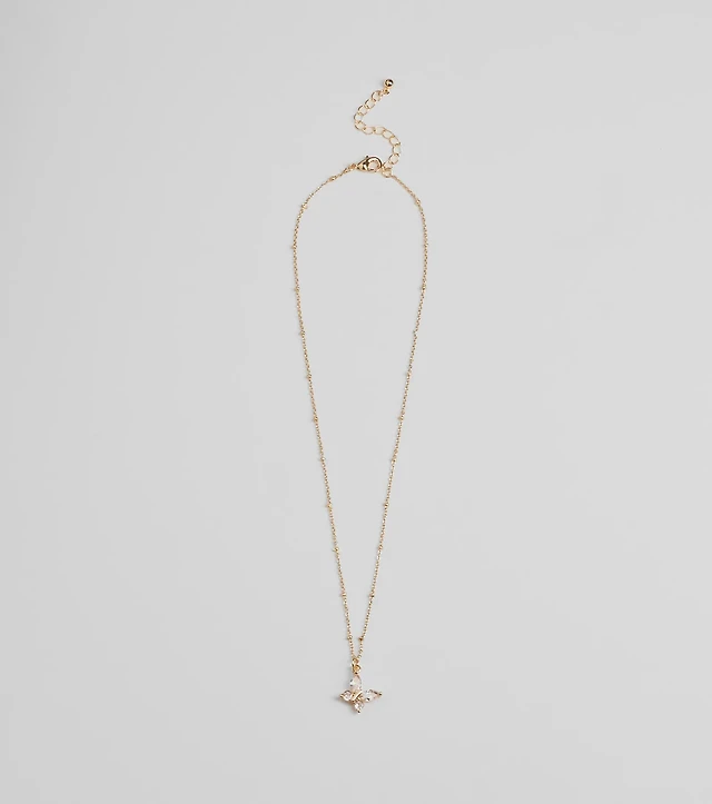 Charming Glam Cubic Zirconia Butterfly Pendant Necklace