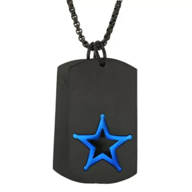 Mens White Cubic Zirconia Stainless Steel Cross Dog Tag 24 Inch Pendant Necklace