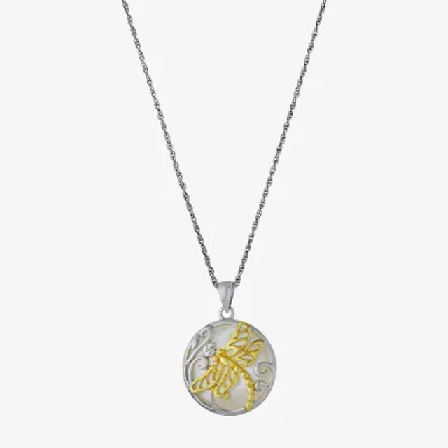 Womens White Mother Of Pearl 14K Two Tone Gold Over Silver Butterfly 18 Inch Pendant Necklace