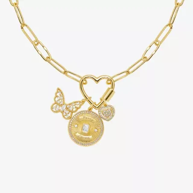 Disney Classics Beauty And The Beast Womens Cubic Zirconia 14k Rose Gold Over Brass Pure Silver Over Brass 18 Inch Pendant Necklace
