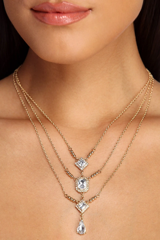 Dainty Layers Rhinestone Chainlink Necklace Set