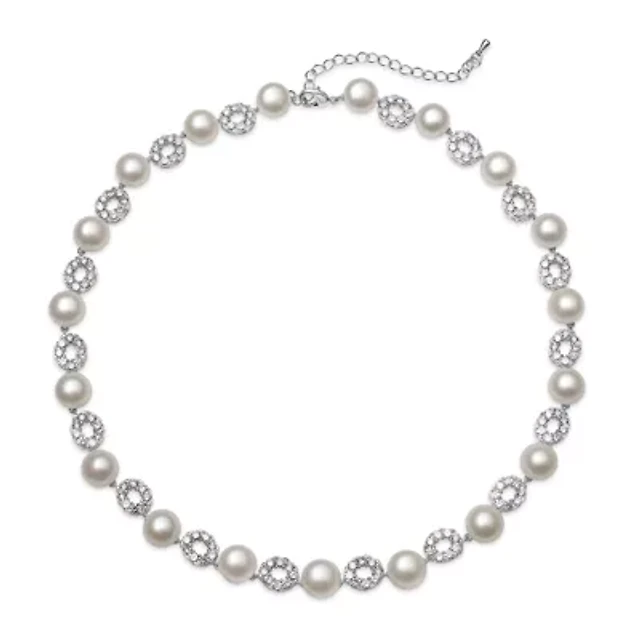 Cultured Freshwater Pearl and Cubic Zirconia Silver-Plated Necklace