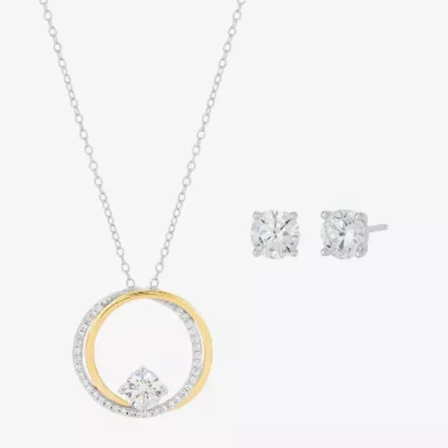 Diamonart Womens Cubic Zirconia Sterling Silver Round 3-pc. Jewelry Set