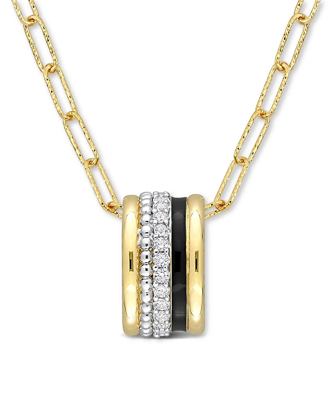Rachel Glauber 14K Gold Plated Spherical Pendant with Rectangular Accent Necklace