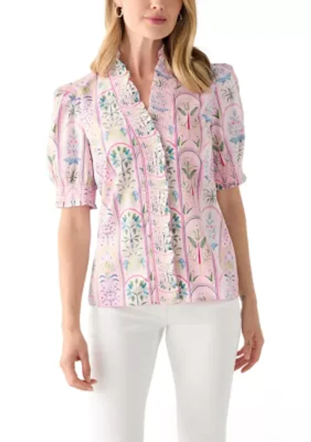 Petite Elbow Sleeve Print T-Shirt with Scallop Trim