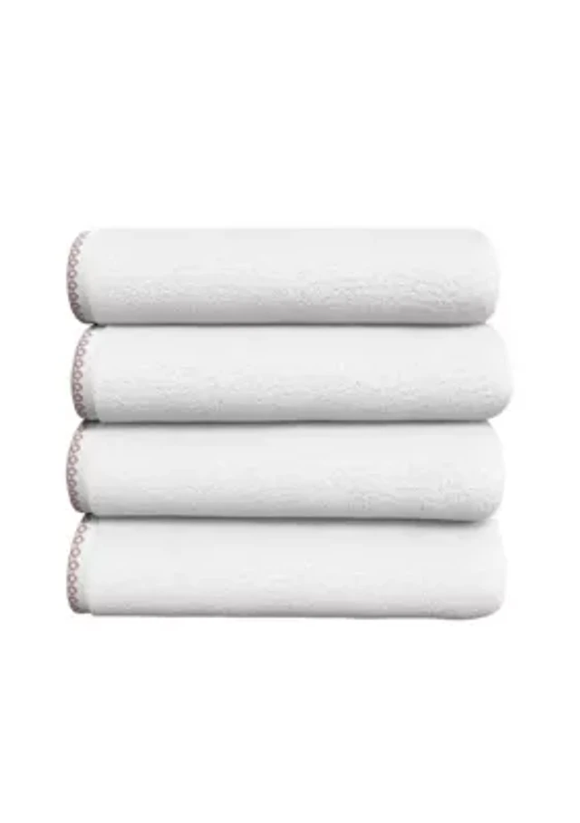 Cotton and Linen-Texture Border 4 Pack Bath Towel Set