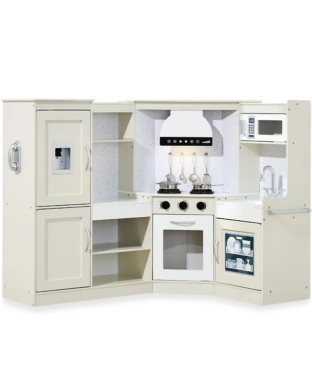 Large Play Kitchen with Full Set of Appliances for a Modern Day Pretend Kitchen, Tons of Storage, Corner Play Kitchen Set with Sound Effect, Education
