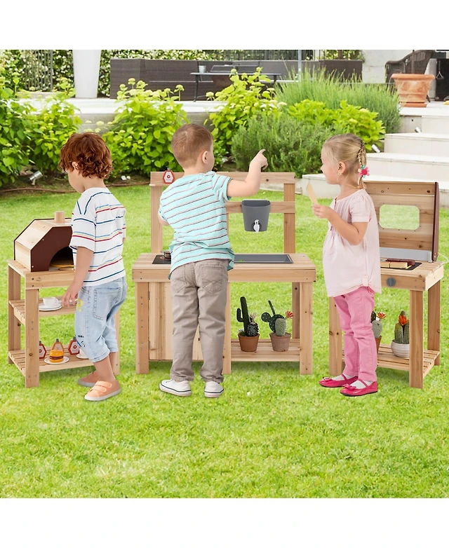 Gymax Mud Kitchen Playset Outdoor Kids Pretend Play Kitchen w/2 Removable Sinks Faucet
