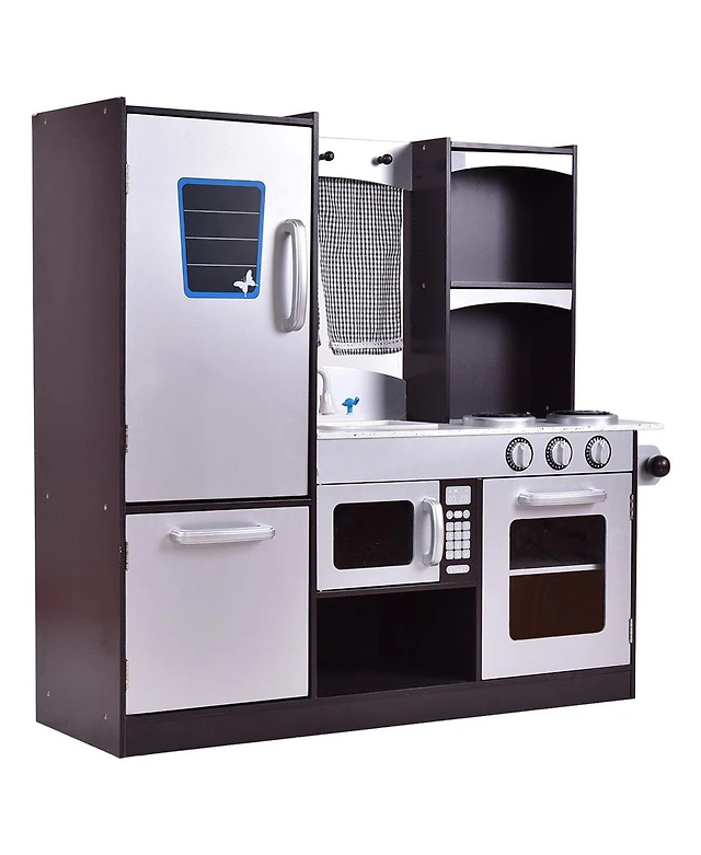 Play Kitchen Set for Kids, Kids Kitchen Playset with Lights Sounds, Apron and Chef Hat, Ice Maker, Microwave, Towel Rack, Utensils, Range Hood, Fun wi