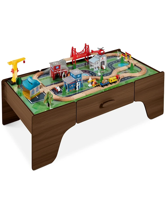 Hey Play 75-Piece Wooden Train Set with Play Table