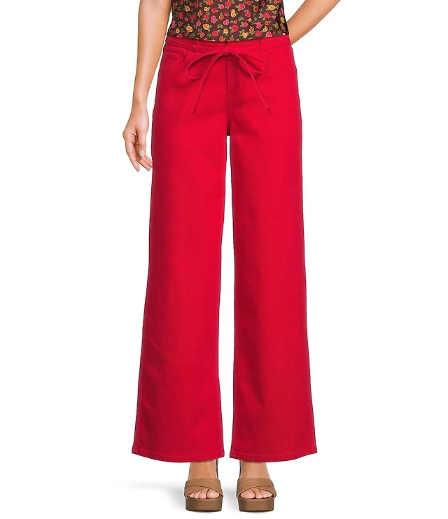 Gibson & Latimer Coordinating Woven Moonshadow Satin High Rise Belted Pleated Wide Leg Pants