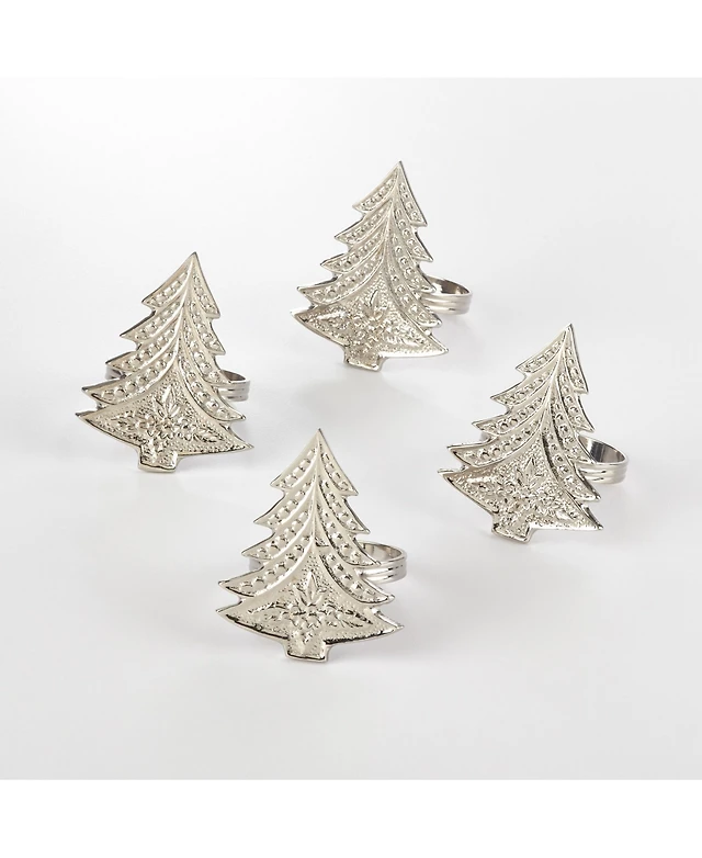 Saro Lifestyle Christmas Tree Design Christmas Tree Napkin Ring, Set of 4