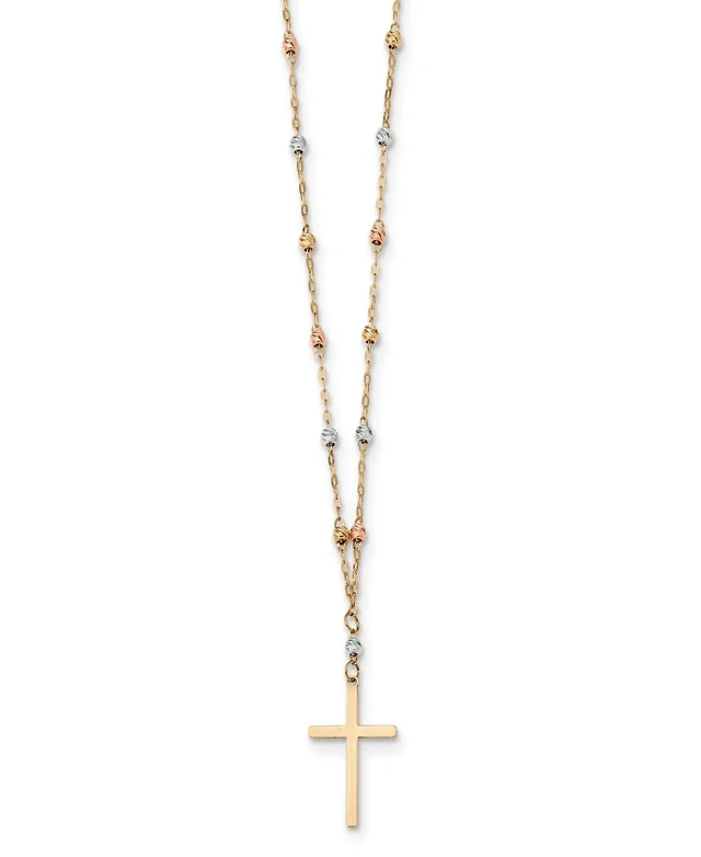 Tri-Tone Beaded Necklace in 10k Yellow, White and Rose Gold