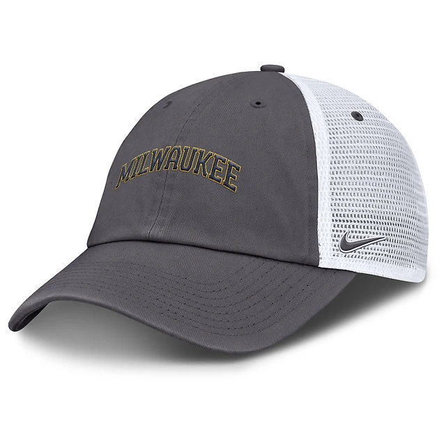 Men's Nike Gray Milwaukee Brewers Wordmark Club Adjustable Trucker Hat