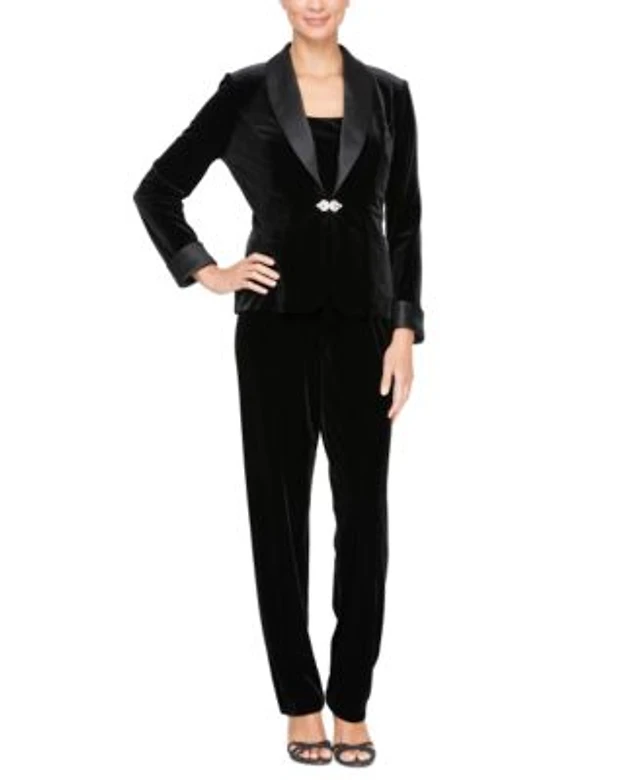 Alex Evenings Womens Velvet Satin Collar Jacket Tank Top Slim Leg Pants