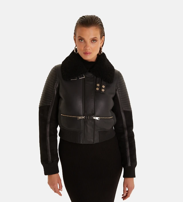 Miss Circle Women Farryn Mahogany Faux Suede Cropped Bomber Jacket