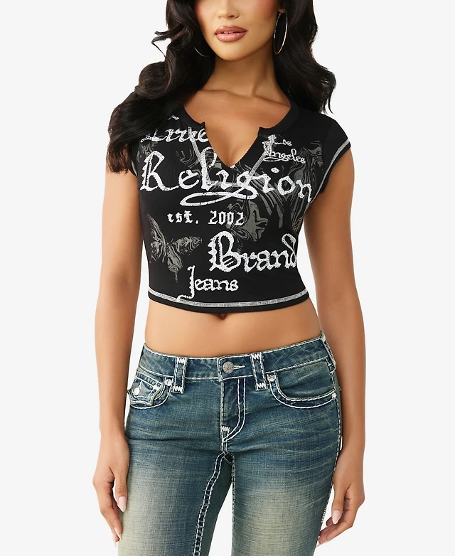True Religion Anniversary Crystal Spicy Cropped T-Shirt