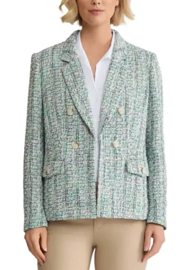 Petite Long Sleeve Faux Double Breasted Tweed Blazer