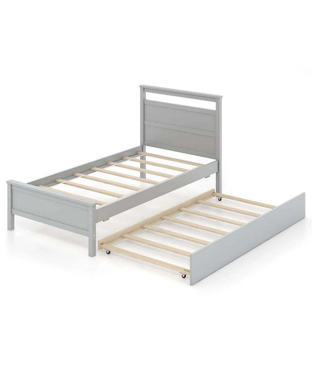 Gymax Twin Size House Bed w/ Trundle Roof & Safety Guardrail Wood Slat Support