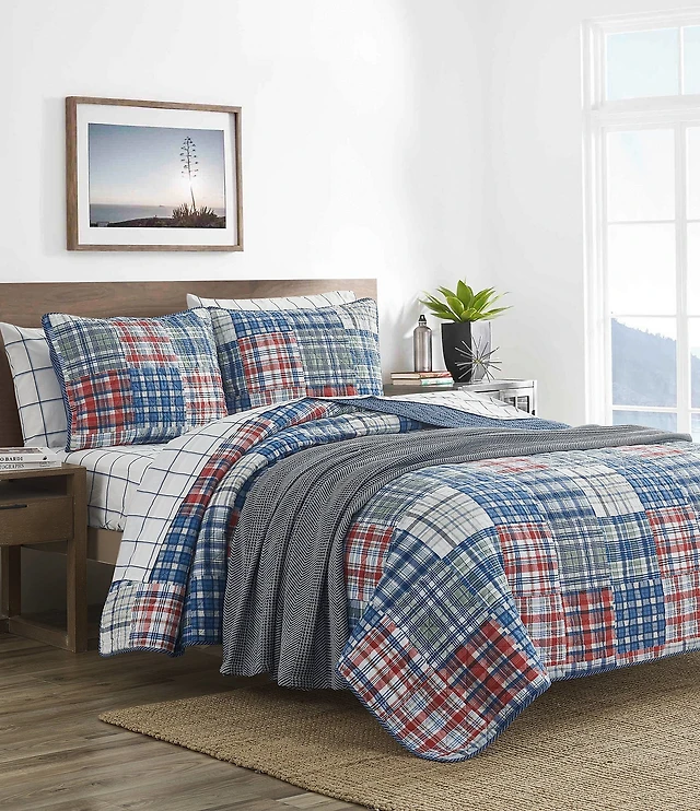 Nautica Raeford Blue Reversible Plaid Quilt Set