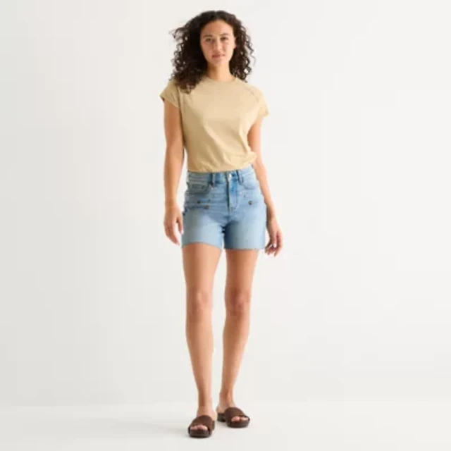 Arizona Curvy Womens 4" Mid Rise Juniors Denim Short