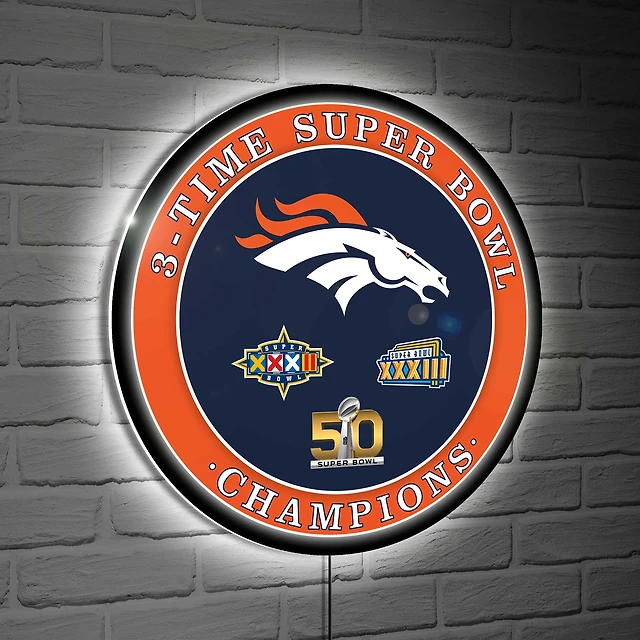 Denver Broncos Three-Time Super Bowl Champions XL Round LED Wall Sign
