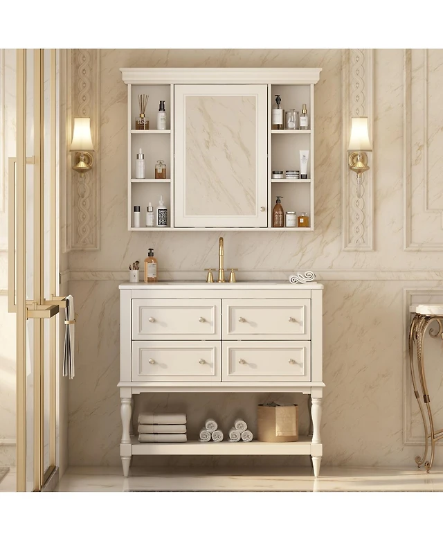 Busdays Bathroom Storage Cabinet and Vanity Sink Combo with Glass Doors, Drawer and Adjustable Shelves