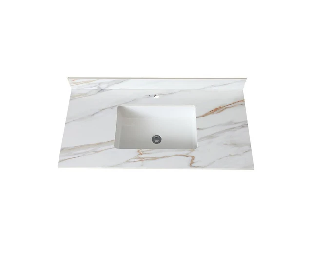 Casainc 43 Inch Marble Vanity Top, Bathroom Vanity Top with Undermount Rectangular Middle Sink and 4" Height Backsplash, Pre-Drilled Faucet Hole Vanit