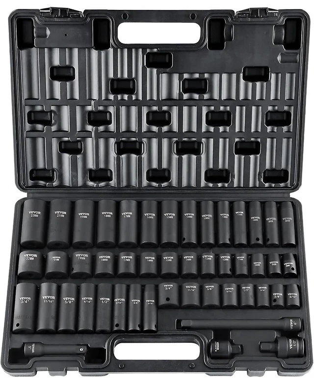 Xdovet Rive Impact Socket Set, 48 Piece Socket Set Sae and Metric 8-22mm 6 Point Cr-v Drive Extension Bar Universal Joint and Power Drill Adapter