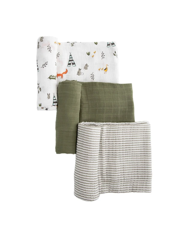 Little Unicorn Watercolor Roses Cotton Muslin 3-Pack Swaddle Blanket Set
