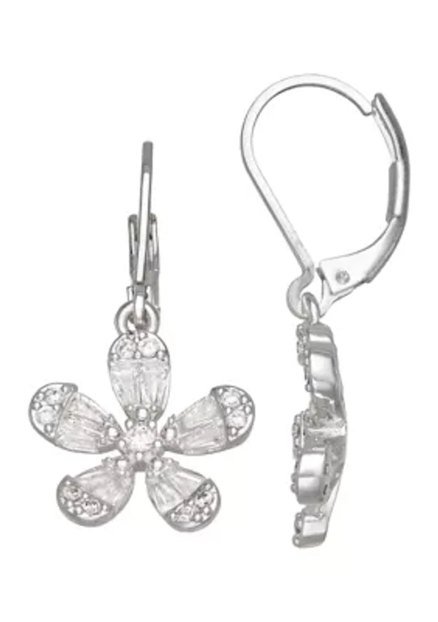 Silver Cubic Zirconia Flower Droplet Earrings