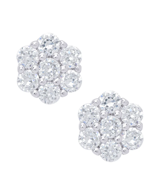 Sterling Silver Cubic Zirconia Flower Stud Earrings