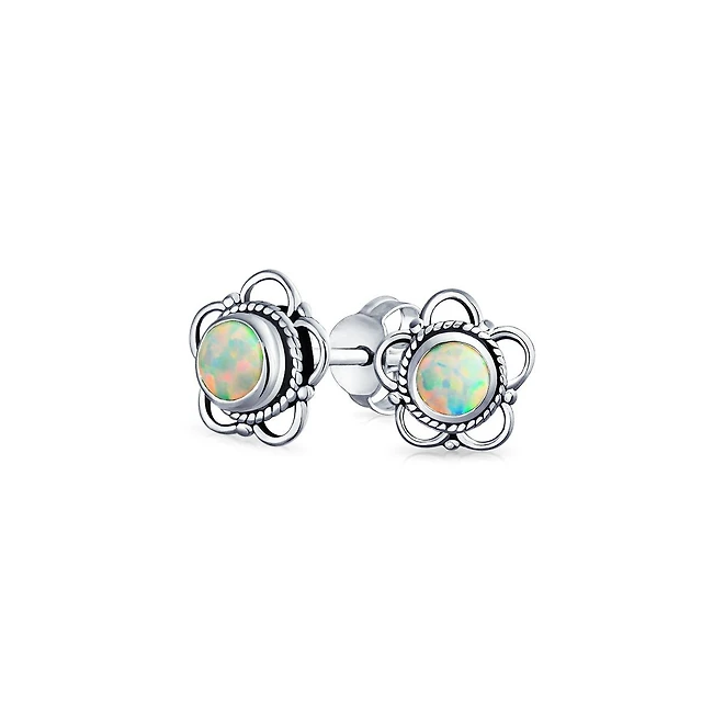 Surgical Steel Synthetic Opal & Flower Flat Back Earring Pack