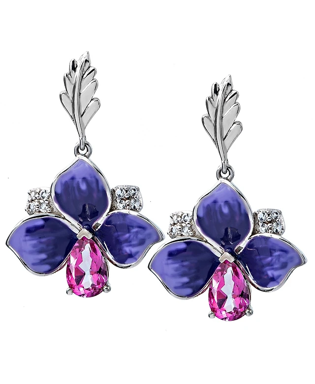 Suzy Levian New York Sterling Silver Sapphire Created White Flower Earrings