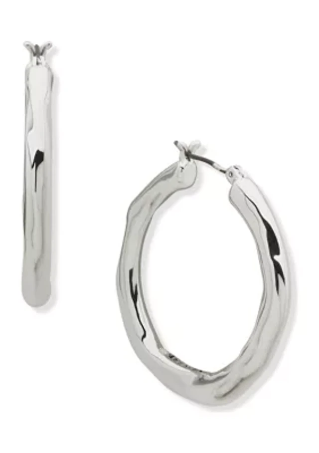 Silver Tone 56 Millimeter Molten Tube Hoop Earrings