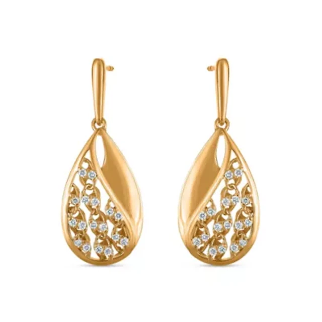 14K Gold Plated with Green Pear-Shaped Cubic Zirconia Drop Earrings