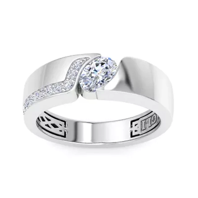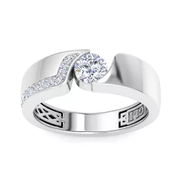 Lab Created Mens 1 1/2 Carat Round Shape Grown Diamond Ring Sterling Silver