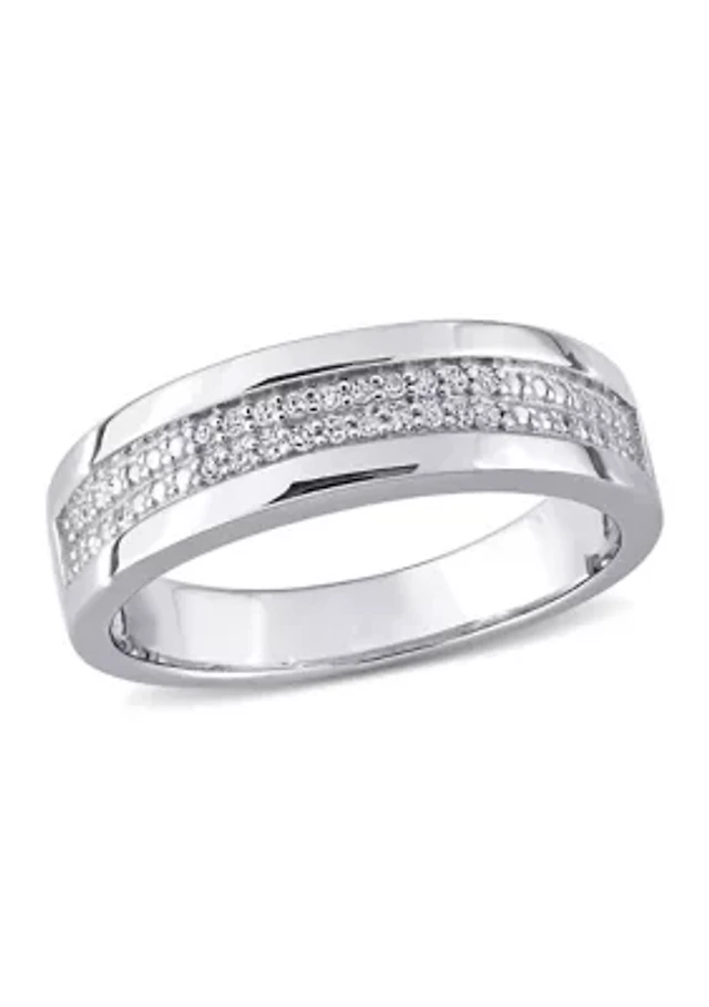 Silver 3/8 Cttw Composite Enhanced Black and White Diamond Men's Band Ring