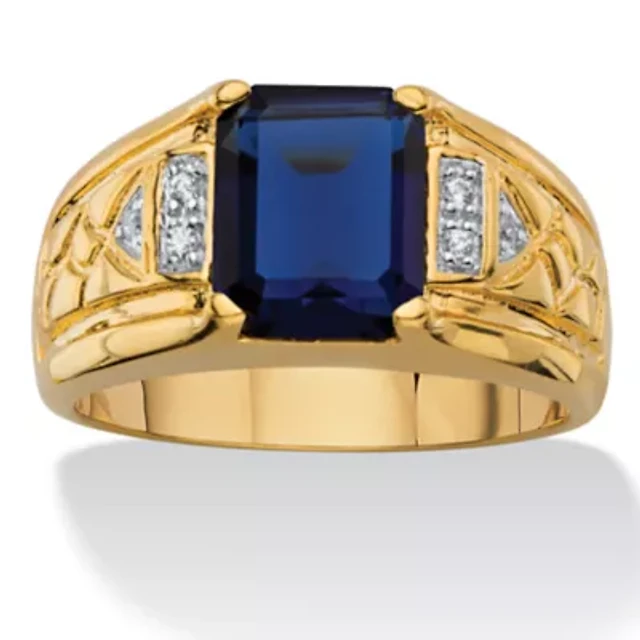 Lab Created Men's 1.24 Cttw. 18k Gold-plated Silver Square-Cut Sapphire Ring