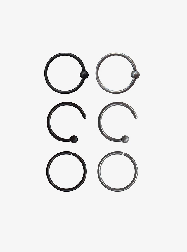 Steel Star Moon Nose Stud & Hoop 9 Pack