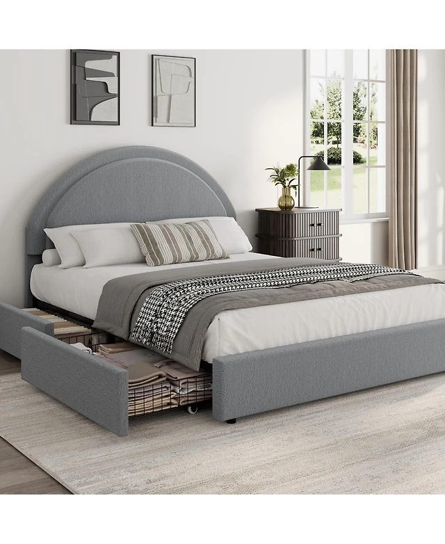 Homfan Boucle Bed Frame, Upholstered Platform Cloud Bed with Soft Round Headboard, Heavy Duty and Noise Free, No Box Spring Needed