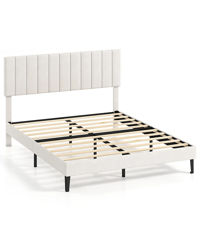 gaomon Queen Velvet Bed Frame with Wingback Headboard Wood Slats