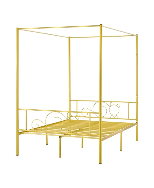Gouun Full Size Metal Four-Poster Canopy Bed Frame with Headboard