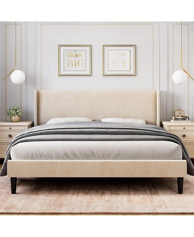 Homfan elvet Upholstered Bed Frame with Wingback Headboard