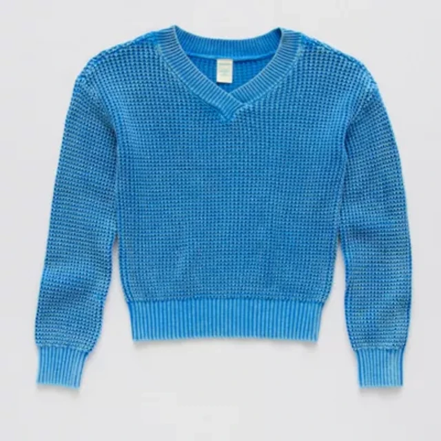 Arizona Juniors Womens V Neck Long Sleeve Striped Pullover Sweater