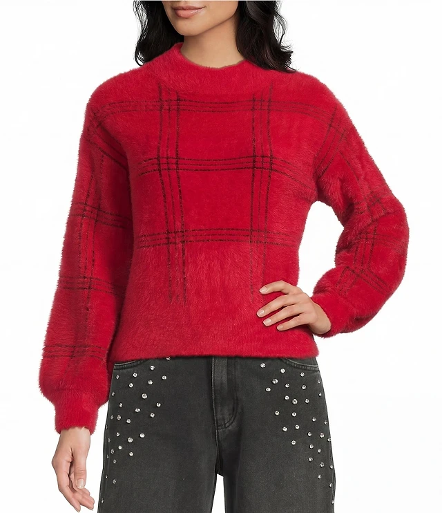 C&V Chelsea & Violet Plaid Eyelash Sweater