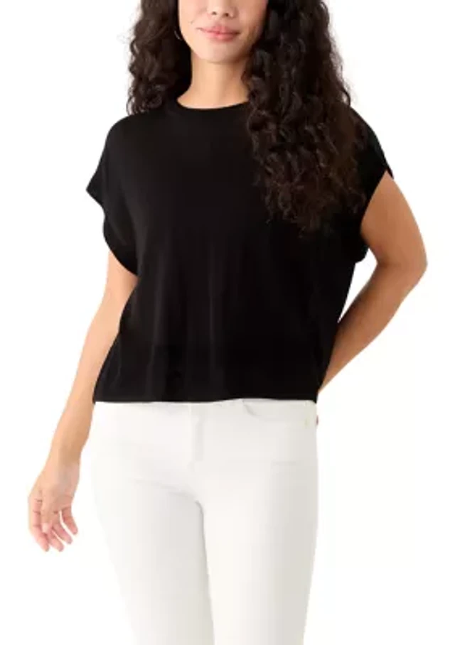 Vince Camuto Sweater Pointelle Crew Neck Short Sleeve Vest