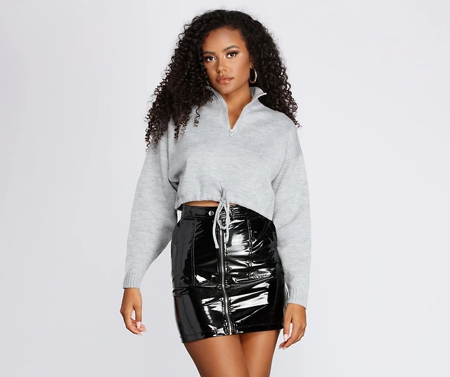 Chelsea & Violet Big Girls Plaid Mock Neck Eyelash Sweater